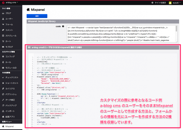 ここまでで、Mixpanel側のデータ受信準備とa-blog cms側の対応準備ができました。