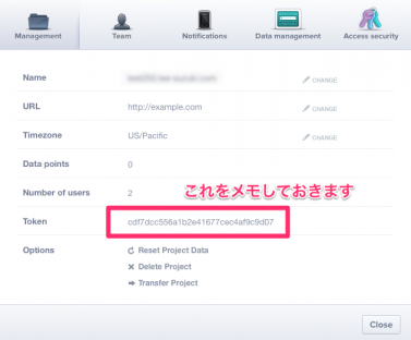 - Mixpanelの利用登録とトラッキングコードおよびトークンの取得