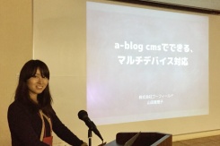 株式会社ゴーフィールド 山田さんから、レスポンシブ設計とa-blog cms のルール機能を組み合わせたWebサイトのマルチデバイス対応についてお話いただきました。