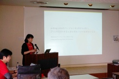 データファーム株式会社 岡田さんから、a-blog cms と法律の考え方の類似についてテーマの継承等を例にお話いただきました。
