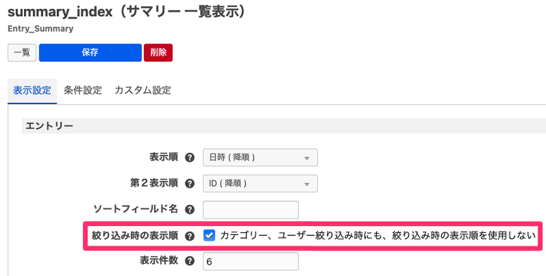 エントリーの表示順には、