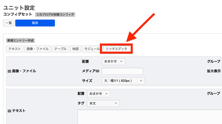これにより新規エントリー作成時の初期ユニットとして「リッチエディタ」を選べない問題などが解消されました。