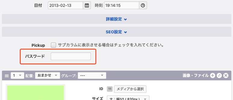 エントリーのカスタムフィールドでパスワードを設定する実装方法