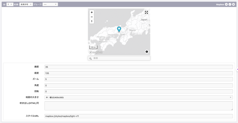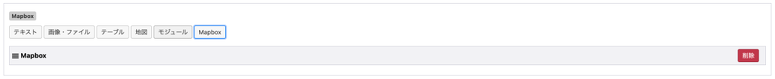 これで管理画面の準備が整いました。 エントリー編集画面に移り、Mapboxボタンでユニットの追加をしてみましょう。 すると、以下の画像のように表示されると思います。
