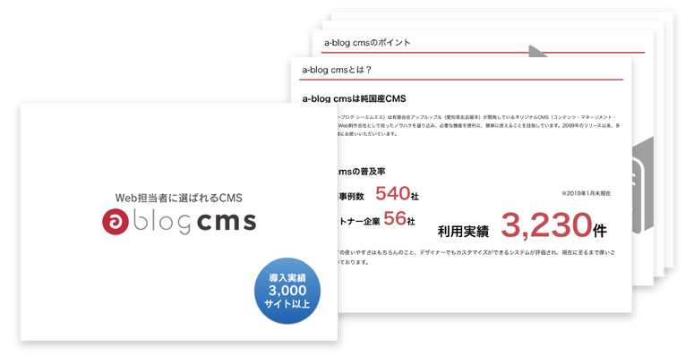 資料請求フォームで配布している内容をアップデートいたしました。 今回は、「a-blog cms 提案資料」「a-blog cms プロフェッショナル・エンタープライズライセンス 機能紹介チラシ」「各種セミナーのご案内資料」の内容を更新しています。