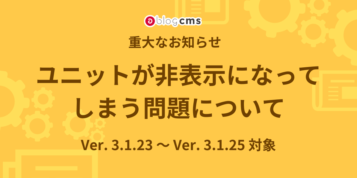 ## 概要 Ver. 3.1.23 以上で、**ユニットを1つでも非表示にすると、それ以下のユニットも非表示**になってしまう問題が確認されました。 クリティカルな問題になりますので、該当バージョンをお使いの方はアップ...
