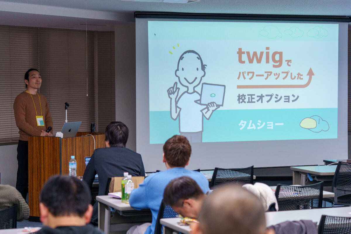 一方で、フィルター名と a-blog cms 標準の校正オプションの競合時には Twig が優先されるため、従来オプションを利用する場合は acms_ プレフィックスが必要となる点や、危険なタグを除外やそのまま出力する際の a-blog cms と Twig の raw・safe_html などの注意点も共有しました。独自校正オプション「読了時間算出」など拡張例も紹介され、今後の活用が期待される内容となりました。