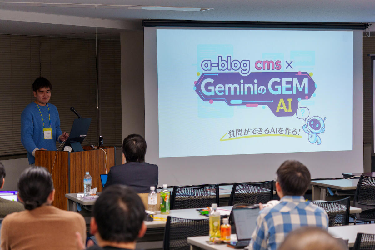 Gemini を活用した a-blog cms 専用 AI アシスタント構築についての発表が行われました。Gemini の強みである Google アカウントさえあれば利用できる利便性や、Google ドライブ/Gmail との高い連携性を活かし、独自のカスタムエキスパートを作成するプロセスが紹介されました。