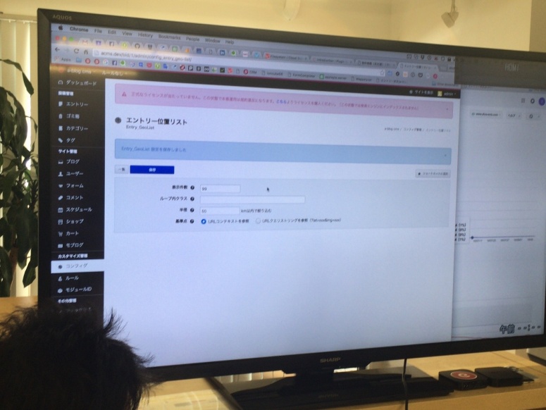 写真がボケてますが、ここでは表示件数・検索半径(km)・緯度経度の指定方法を設定しています。最終的にはサマリー Entry_Summary と同等の設定ができるようになるのではないかと思います。