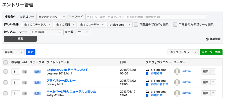 制限もあるので、どのように使うんだろ?って思っていました。 a-blog cms Ver. 2.10.0 リリースしました! のサブカテゴリーのところに書いてありますが メインカテゴリー と サブカテゴリー を混ぜて運用するのではなく分けて運用するとスッキリした運用ができそうです。