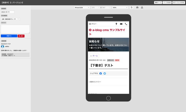 承認依頼が差し戻されました [323:テスト / draft:バージョン2]