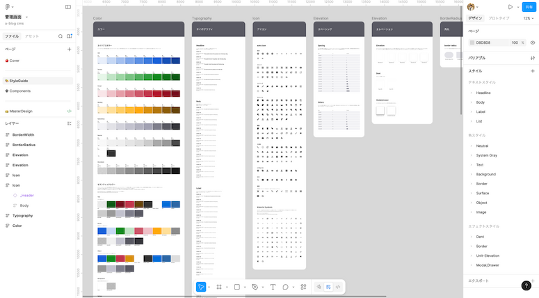 a-blog cms Ver.3.2 のUI制作がひと段落したタイミングで、Figma上にある管理画面向けのスタイルガイドを整理しました。これまでのUI制作の中で蓄積されてきたデザイン要素をあらためて見直し、今後の開発でも迷わず使える状態をつくることを目的としています。