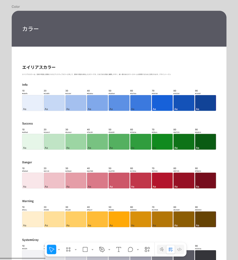 これまでUI制作を進める中で自然と増えていったカラーや余白、文字サイズなどのスタイルをあらためて棚卸ししたことで、「何が」「どれくらい」存在しているのかを具体的に把握できるようになりました。