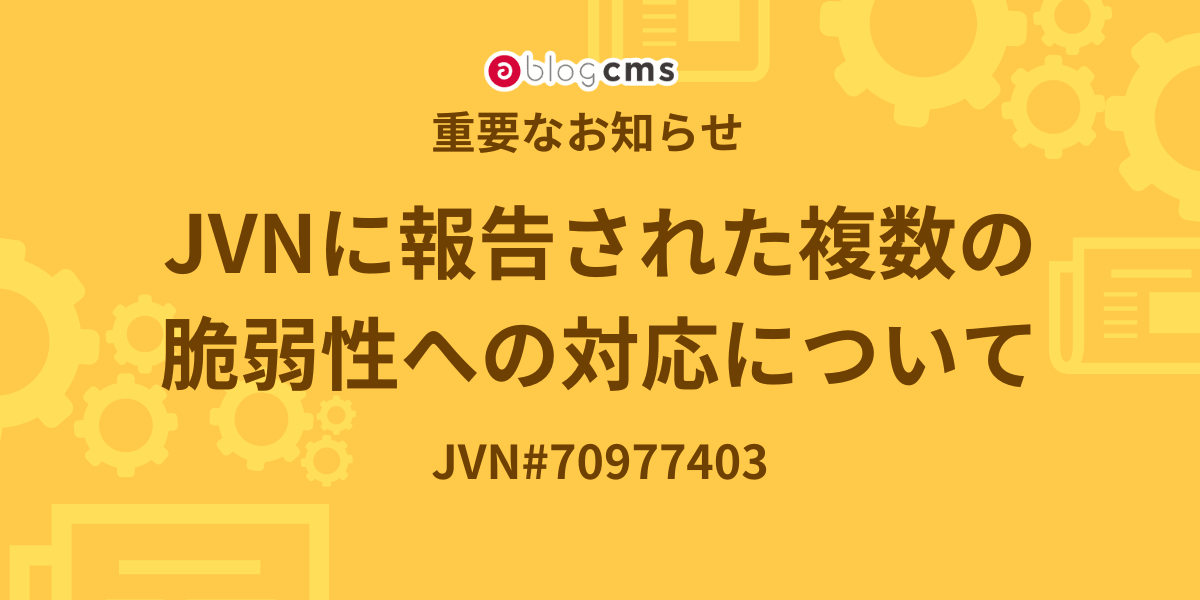 a-blog cms で複数の脆弱性が見つかりました。 該当の状況に当てはまる場合は大変お手数ですが以下のご対応をお願いいたします。