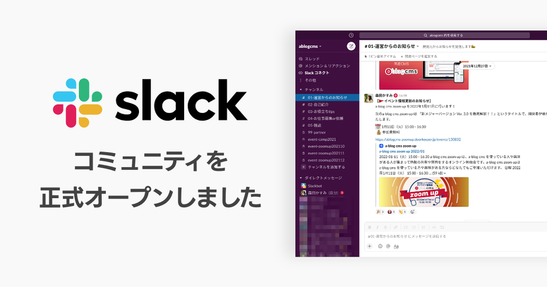コロナ禍によりユーザーの皆様が交流する場が少なくなっていることを感じており、Slackコミュニティを開設することになりました。