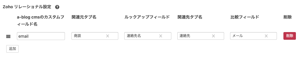 Zohoと連携するa-blog cmsフィールドの設定