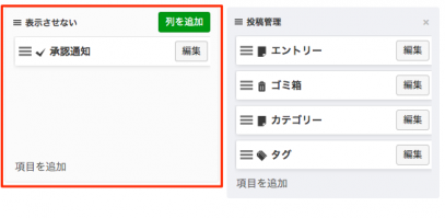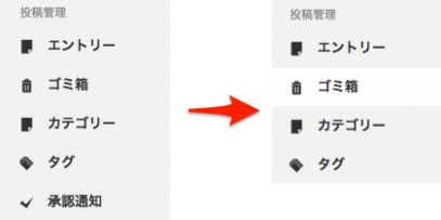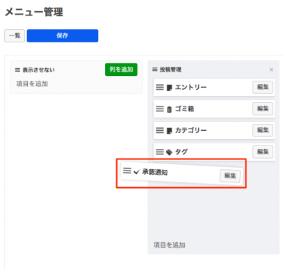 保存すると、このように「投稿管理」から「承認通知」メニューが消えていることが確認できます。