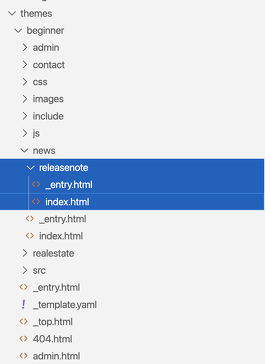 a-blog cms で更新できるページを作るためのHTMLファイルをテンプレートファイルといいます。このテンプレートファイルにモジュールを貼り付けていくことで、データベースに保存されている情報をHTMLに配置していきます。