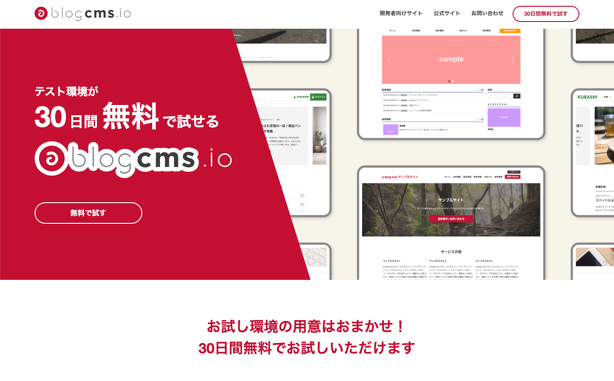 a-blog cmsのテストサーバーとして無料でご利用いただける「ablogcms.io」も用意しております。本や入門ドキュメントで基本を学んでいただきながら、実際の使用感や動作はこちらの環境でお試しください。