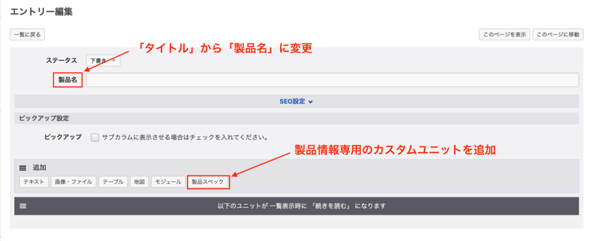 ユニット設定には新規エントリー作成とユニット追加ボタンから追加するユニットをまとめて設定することができます。