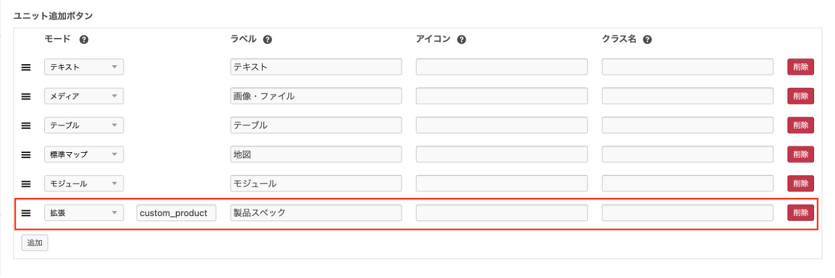 ユニットを追加するボタンの追加・削除ができます。