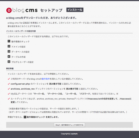 以下の手順で a-blog cms のインストール画面が表示されます。