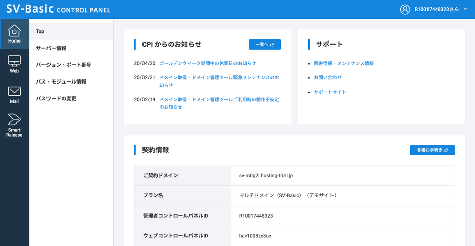 CPI のシェアードプランについては 、2019年6月より SV-Basic となり、それまでは ACE01 というサービスでした。どちらも同じファイルで対応しておりますが CPI シェアードプラン ACE01に「簡単セットアップ」を利用してインストールする も合わせてご覧ください。
