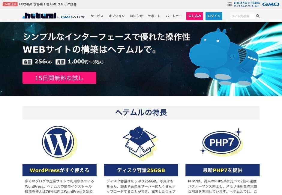 レンタルサーバー毎に用意されている「簡単セットアップ」を利用します。今回は「GMO ペパボ ヘテムル版」を選択してください。