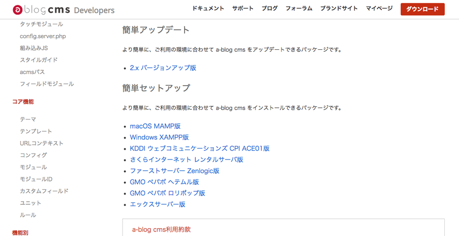 - 利用されるPHPのバージョンに合わせた a-blog cms のパッケージを直接ダウンロード