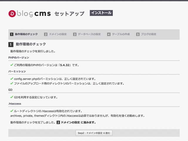 ここまでのサーバー設定が間違っていなければ、以下の画面のように、すべての項目に緑のチェックが入ります。