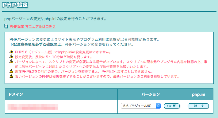 a-blog cmsで利用できる最新バージョンのPHPをご利用ください。(動作条件)
