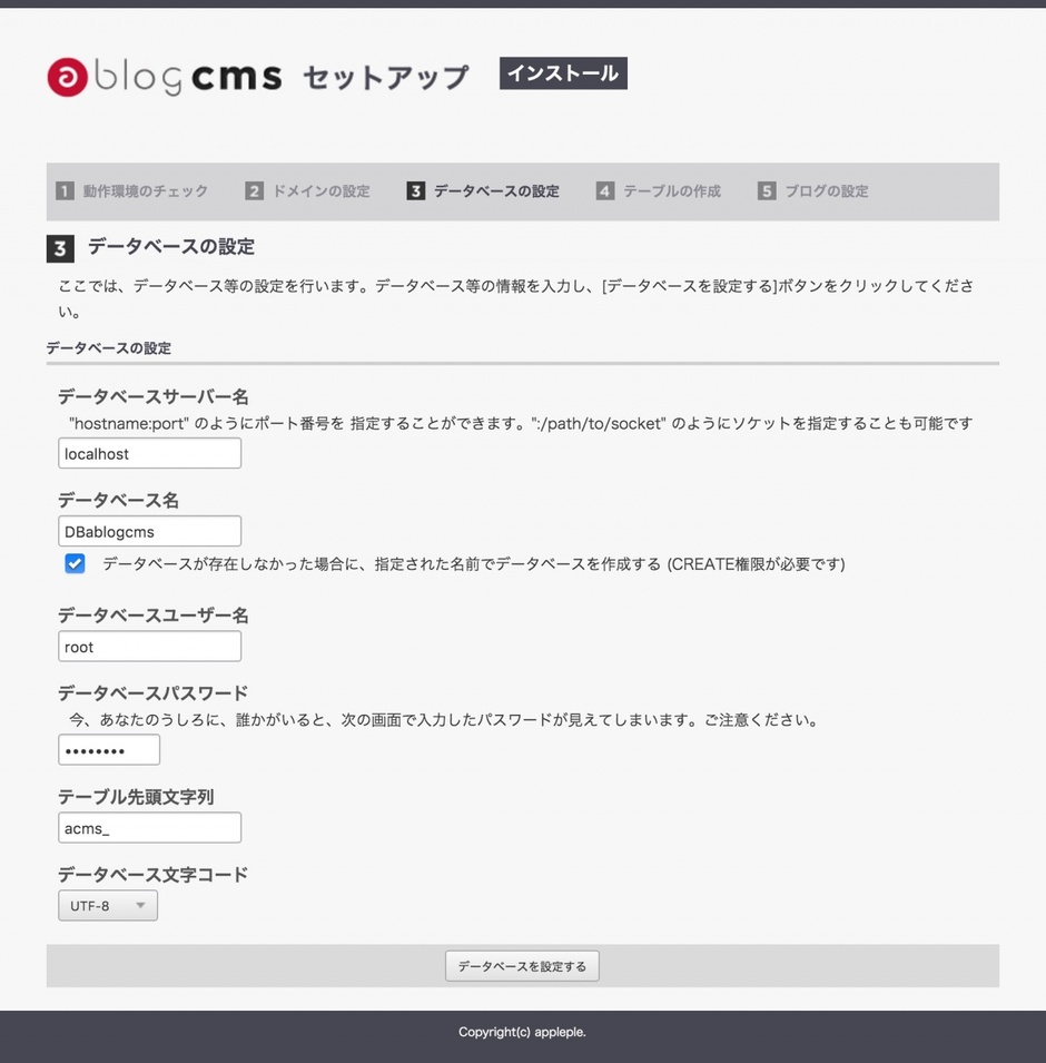 「標準インストーラー」を起動する前段階で a-blog cms をインストールする環境を構築する作業を自動化するためのプログラムで以下の作業を自動化しています。