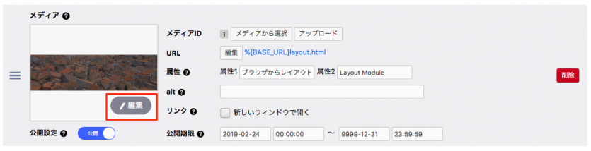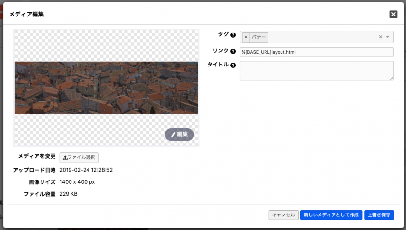 また、Media_Bannerモジュールはメディア機能をそのまま利用しているため、その場でアップロードしたメディアを編集できるのも特徴です。
