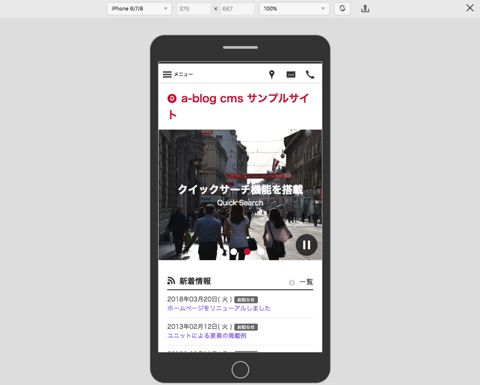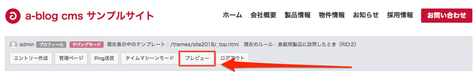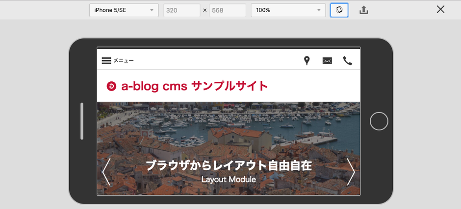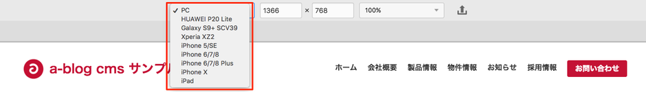 a-blog cms Ver.2.9よりログインしたまま、表示側の確認ができる「プレビュー機能」が追加されました。 プレビュー機能では、スマホやタブレットなどの画面サイズを簡単に切り替えることができ、また User Agent のシミュレートも行いますので、「ルール」による設定も反映されるので確認に便利です。