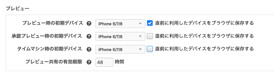 直前で利用したデバイスをブラウザに保存する機能です。 コンフィグ > 機能設定 > プレビュー より、チェックをつけることで履歴が保存されるようになります。