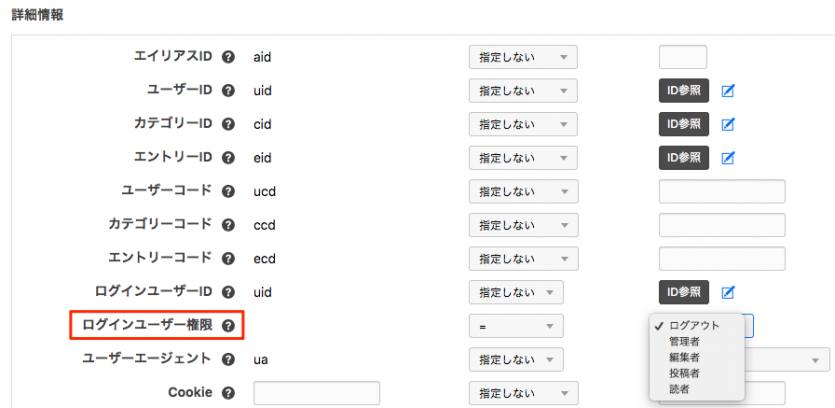 ルール設定で、Cookieの項目に条件を設定します。
