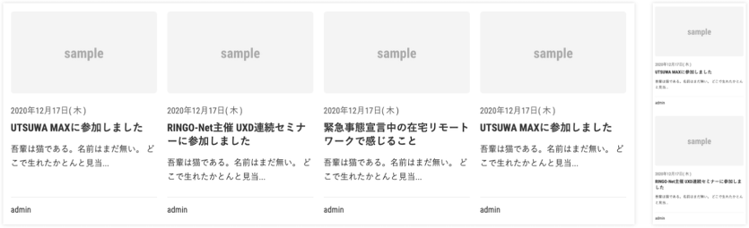 スタッフブログ(blog)カテゴリーのインデックスはオーソドックスなカードスタイルでPC時4カラムです。