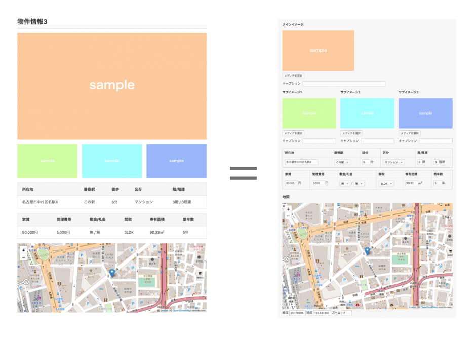管理画面上に標準で用意されている入力欄ではなく、カスタマイズする人が欲しい追加された入力欄のことです。一般的にテーマ作成では、サイトの閲覧者がアクセスする表側のテンプレートを作ることになりますが、カスタムフィールドについては管理画面のテンプレートを作ることで希望の管理画面の UI を構築していきます。