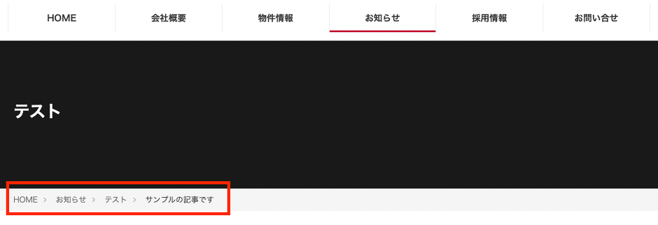 トピックパス(パンくずリスト) は index.html には用意していませんが list.html , entry.html に用意されています。