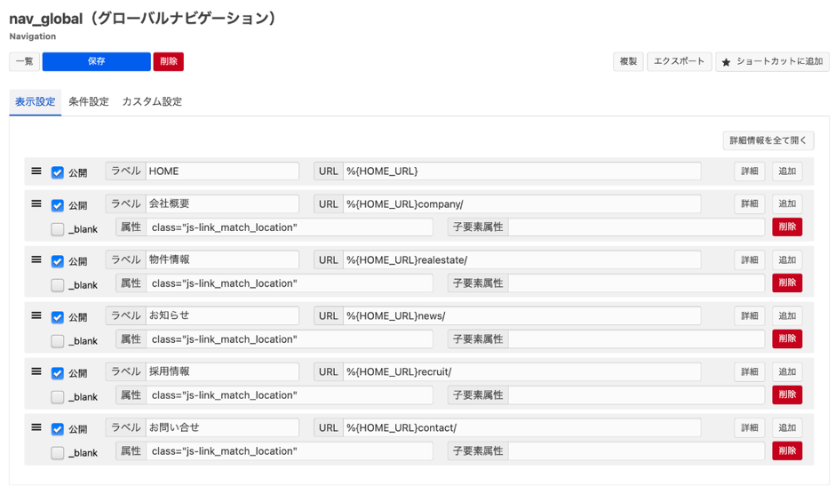表示設定タブでは、何も指定しないとトピックパスにブログ名が最初に表示されますので、HOME や TOP などの表記にしておきます。