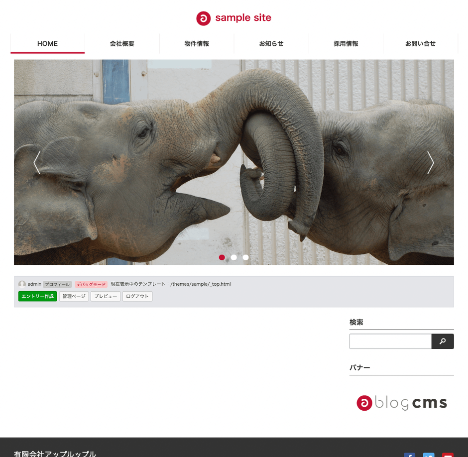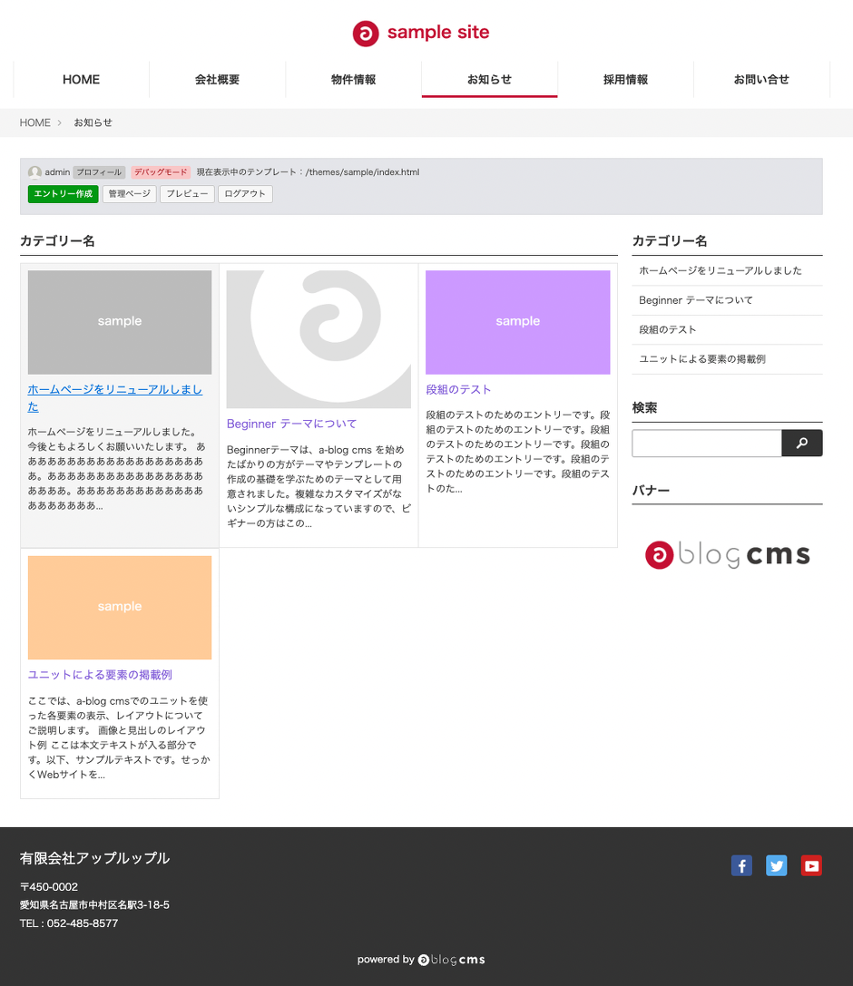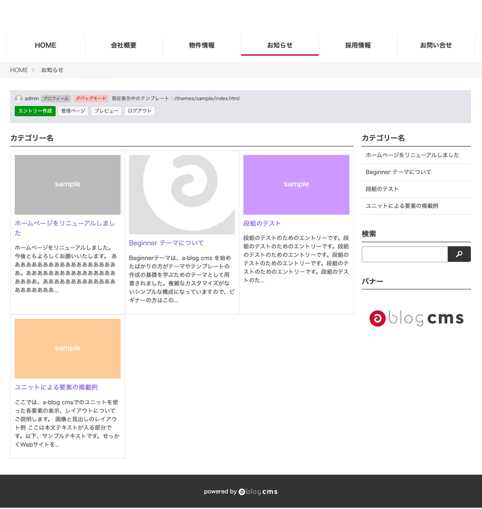 「静的HTMLサイトからCMSのテーマを作ってみよう」では、静的HTMLファイルをa-blog cmsで利用できるようなテンプレートファイルに編集し、最終的には1つのオリジナルテーマを作成していきます。