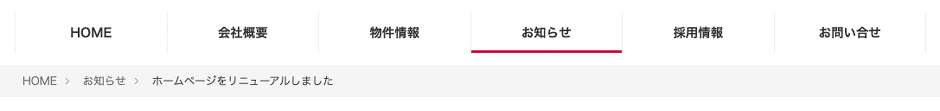 トピックパスには「お知らせ」しか表示されておらず、本来は HOME > お知らせ という表示でいて欲しいところです。グローバルナビゲーション id="nav_global と同様にグローバルのチェックだけつけても、今回は思ったように表示してくれません。