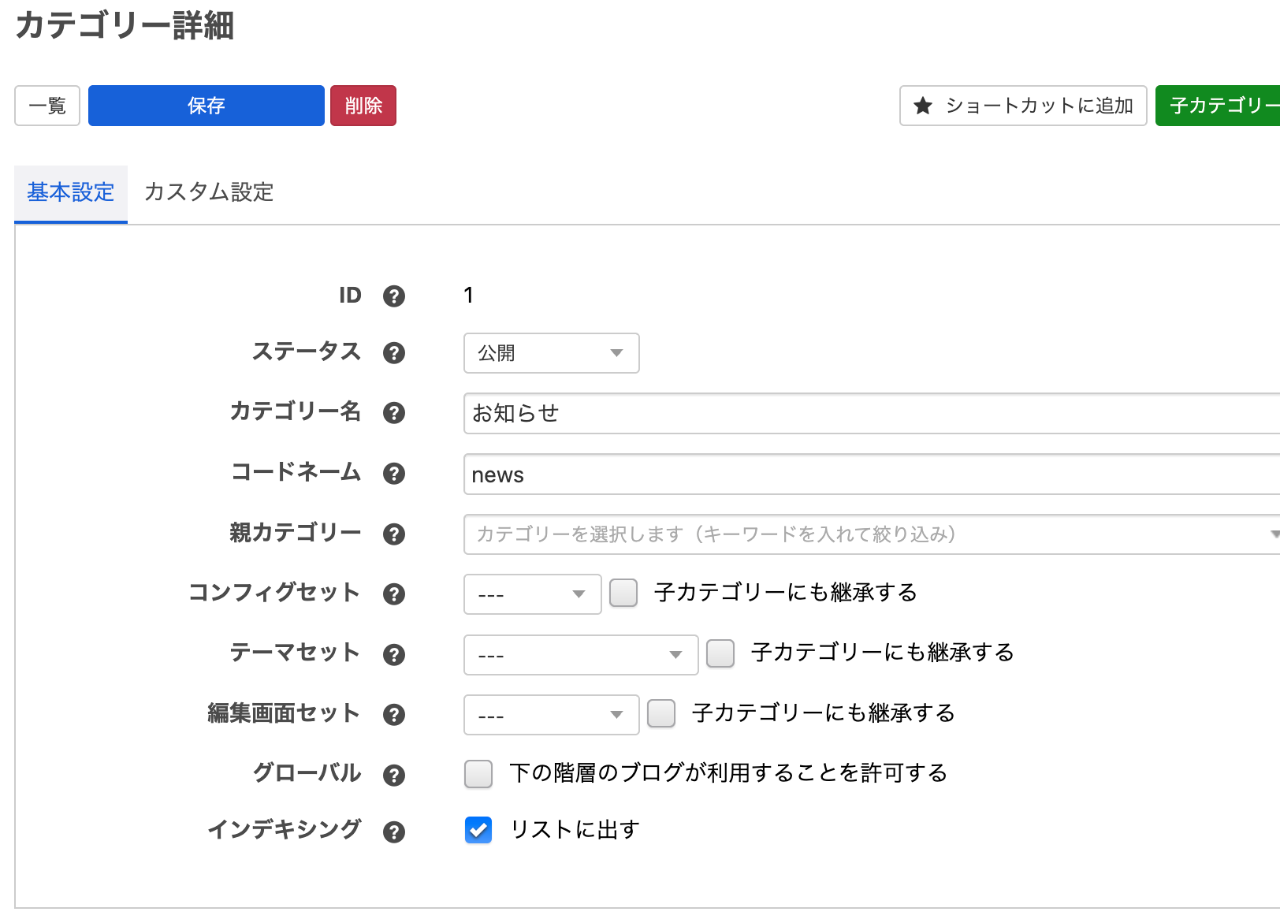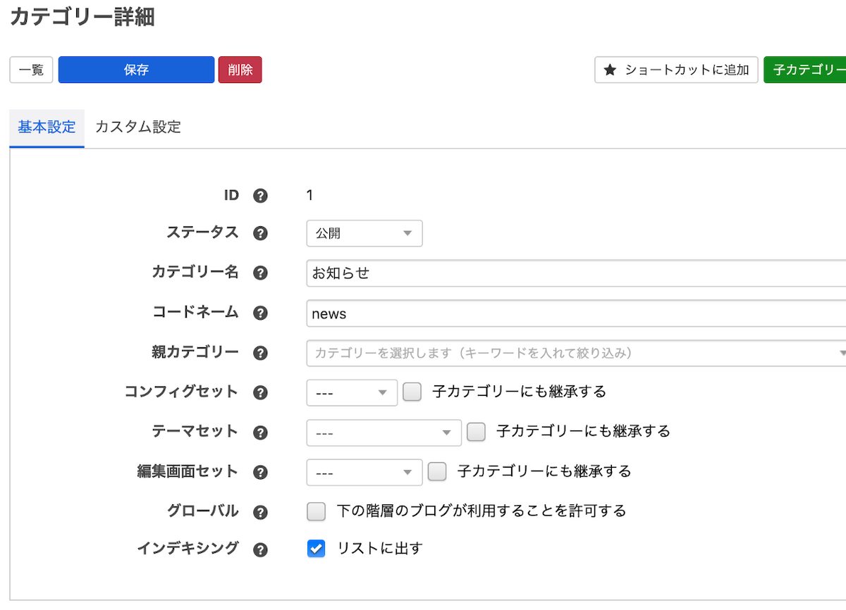 このチュートリアルでは、ルートブログの配下に「お知らせ」カテゴリーを作成します。