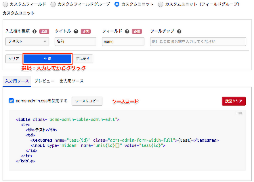 ボタンをクリック後、下図のような見た目でユニットが表示されます。