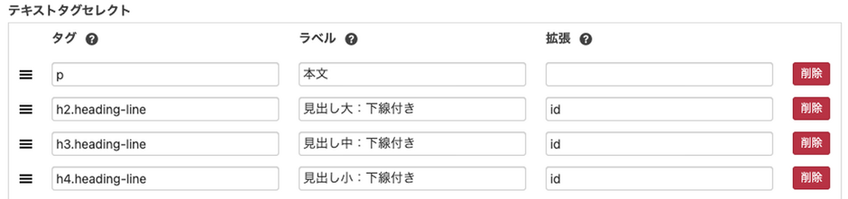 リッチエディターで利用できるデフォルトの装飾
