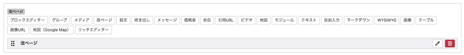 リッチエディターで利用できるデフォルトのブロック