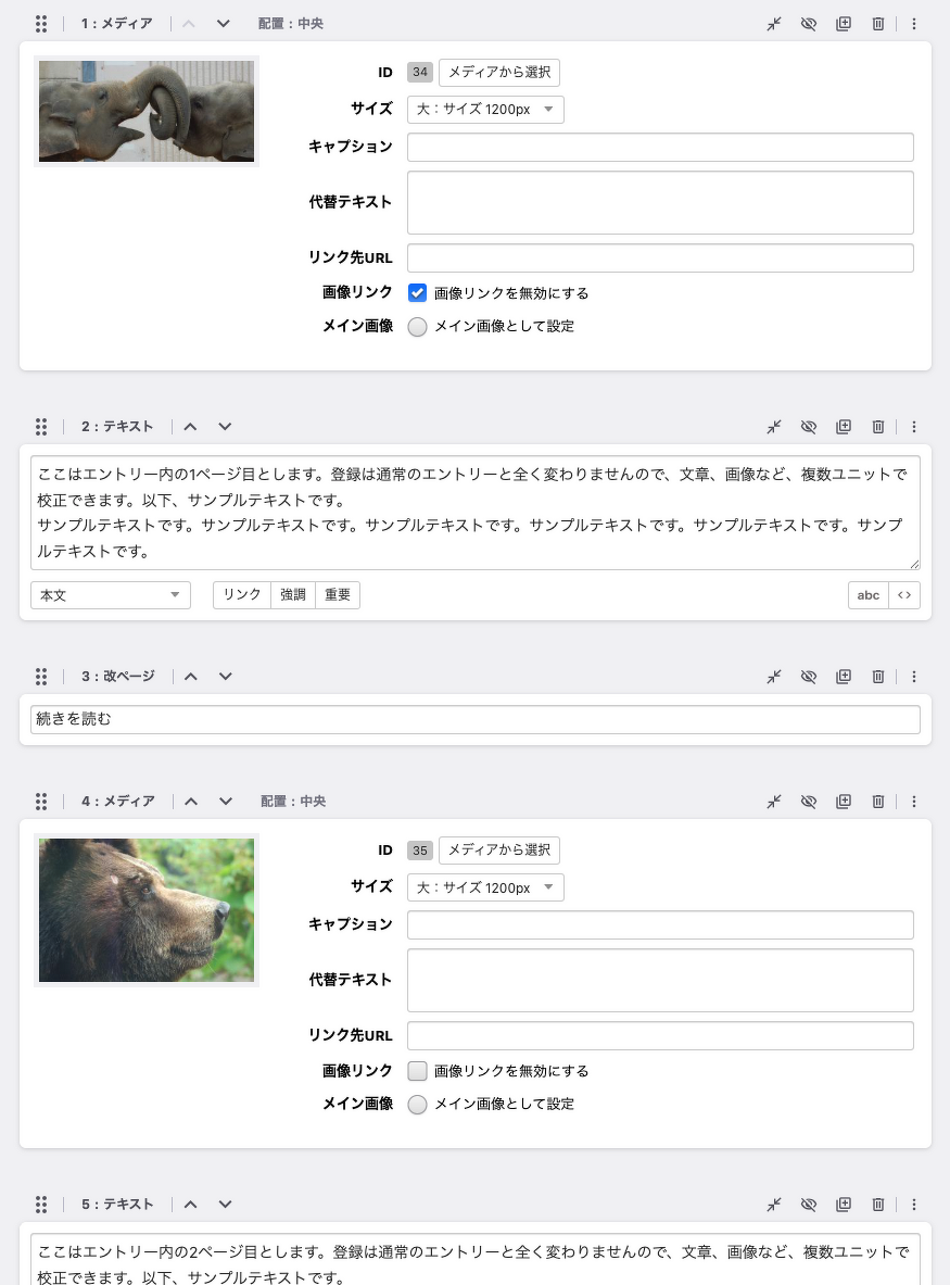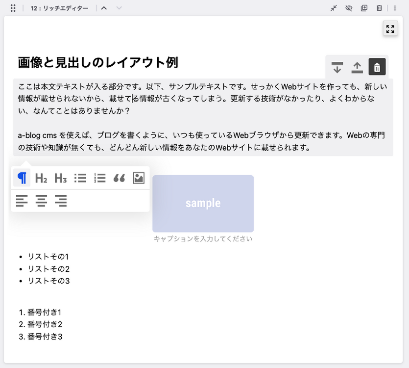 また、ブロックベースの考え方でできているため、見出しと本文を入れ替えたり画像と本文を入れ替えたり、順番の制御が容易に行えます。
