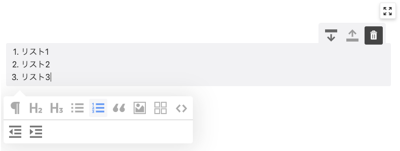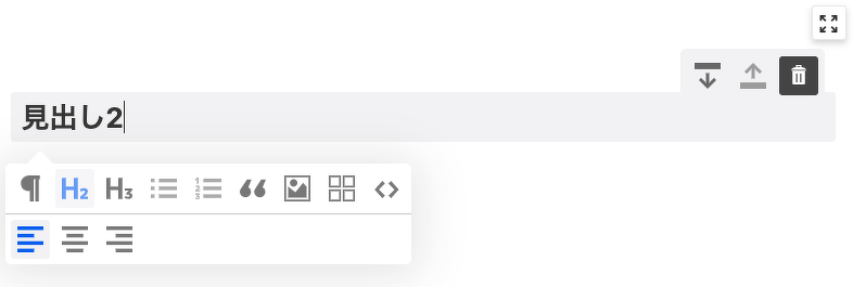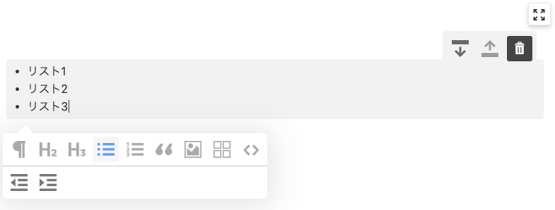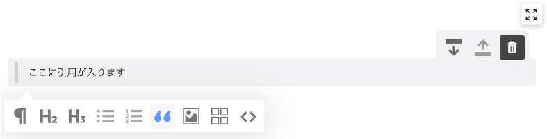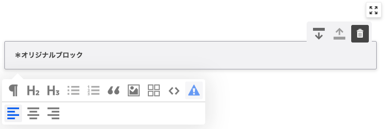 ブロックにカーソルを合わせると以下のような見た目になります。