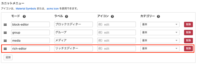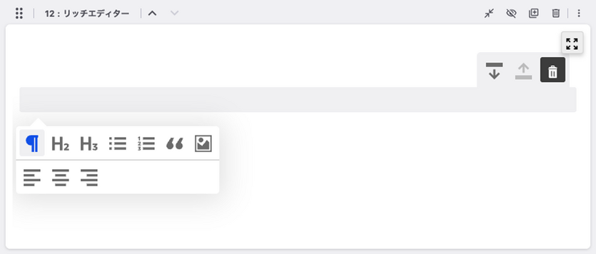 デフォルトでは追加ユニットのボタン群にリッチエディターボタンが追加されていないので、追加しましょう。