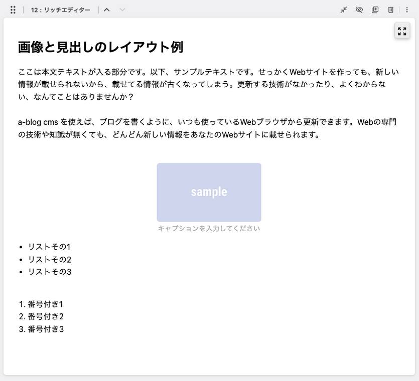 リッチエディターユニットとはVer.2.11から追加された、ブロックでHTMLを記述できるエディター(SmartBlock)を搭載したユニットです。